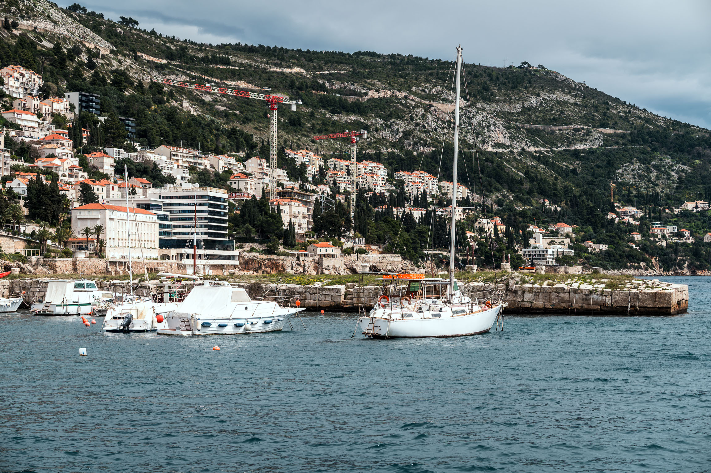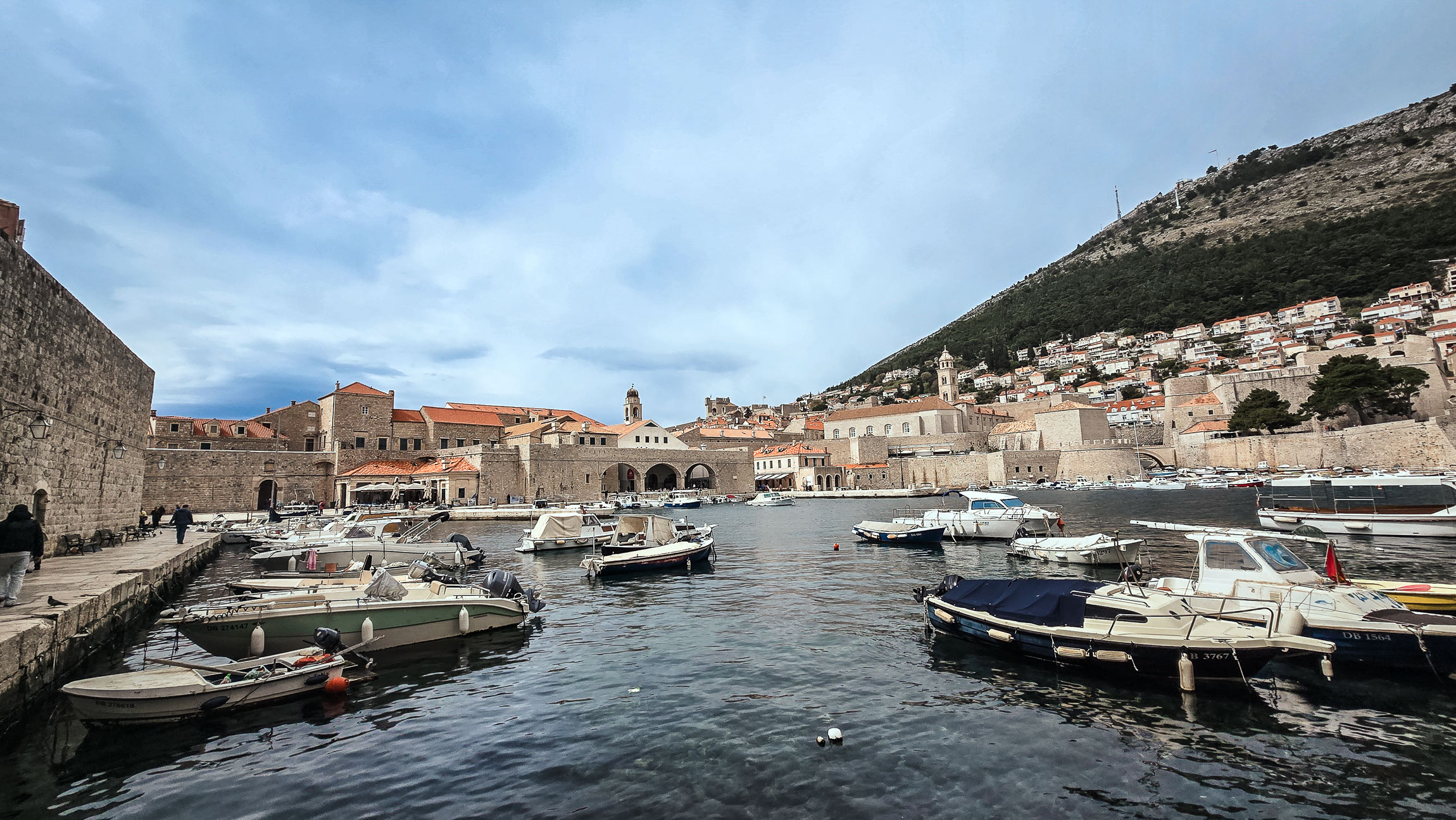 To miejsce to fotograficzny klasyk – Stara Luka, czyli Stary Port Dubrownika. Po lewej stronie widoczna jest brama Ploče, a centralnie w tle można dostrzec wieże klasztorów dominikanów i franciszkanów. Port przez wieki był jednym z najważniejszych punktów handlowych w Adriatyku – statki z Dubrownika pływały aż do Egiptu i Lewantu.